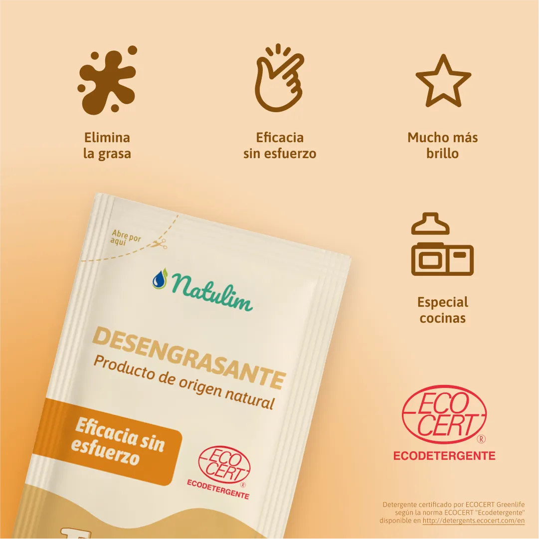 Recarga de Eco-Tiras Desengrasantes Natulim: la solución de limpieza intensiva en formato sólido diseñada para reponer tu botella de vidrio reutilizable, garantizando una eliminación total de la grasa más rebelde sin generar residuos plásticos. Estas tiras hidrosolubles de alto rendimiento han sido formuladas para disolver eficazmente aceites, grasas quemadas y suciedad orgánica incrustada en superficies de cocina, campanas extractoras y hornos.