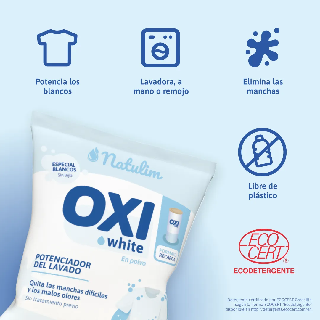 Recarga de Oxi-White Natulim (Bicarbonato de Sodio Puro): la solución de reposición sostenible diseñada para mantener tu hogar libre de químicos agresivos y olores persistentes. Este formato de recarga en sobre de papel permite rellenar tu envase reutilizable con bicarbonato de sodio de alta pureza, un compuesto mineral biodegradable que actúa como neutralizador de olores, potenciador de lavado y agente de limpieza suave. Es el recurso definitivo para quienes practican el residuo cero (zero waste) y buscan una alternativa natural a los ambientadores sintéticos y limpiadores industriales.